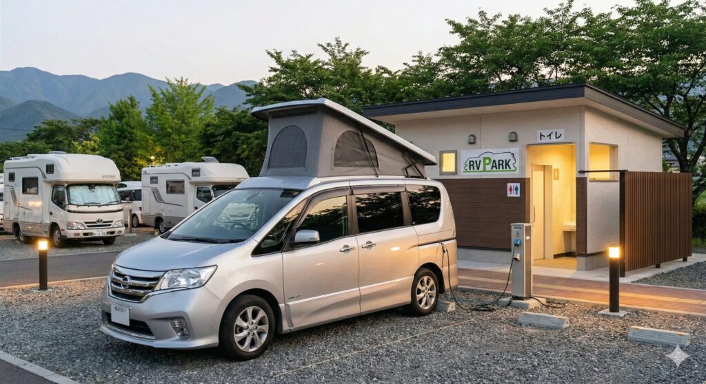 「RVパーク」は、まさに車中泊ファンのために作られた聖地です。日本RV協会が認定した施設で、24時間使えるトイレはもちろん、多くの場所で「外部電源」が借りられます。これがあれば、エンジンを切ったまま冬は電気毛布、夏は扇風機などが使えるので、中毒や熱中症のリスクを劇的に下げられます。ゴミ処理ができる場所も多く、マナーを守って堂々と宿泊できるのが最大の魅力です。