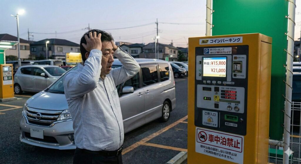 車中泊を検討する方の多くは「ホテル代を節約したい」という思いがあるはずです。そんな時、看板に大きく書かれた「当日最大1,000円」という文字はとても魅力的に見えますよね。しかし、この最大料金の仕組みを正しく理解していないと、出庫時に目玉が飛び出るような金額を請求されることがあります。私が一番皆さんに気をつけてほしいポイントです。