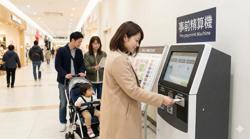 大規模なショッピングモールやアウトレットモール。帰り際に出口ゲートが大渋滞していて、なかなか出られなかった経験はありませんか?これを防ぐ最強の武器が、館内の出口付近にある「事前精算機」です。