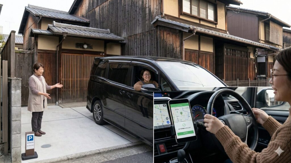 特Pの予約開始日は駐車場ごとに異なります20日前から予約が可能な場所もあり、旅行の計画を立てた時点で駐車場を「自分のもの」にできます。当日はナビに従って指定された場所へ向かうだけ。支払いはクレジットカード等で事前に済んでいるため、精算機で小銭を探したり、後ろの車を気にしたりする必要もありません。観光シーズンの京都は、駐車場待ちの列が原因で渋滞が発生することも多いですが、予約をしていればそんなストレスとも無縁です。ただし、個人のお宅をお借りすることも多いため、看板が出ていない場所もあります。予約完了後に届く写真付きの案内をしっかり確認して、間違えて隣の家に停めないようにだけ注意しましょう。