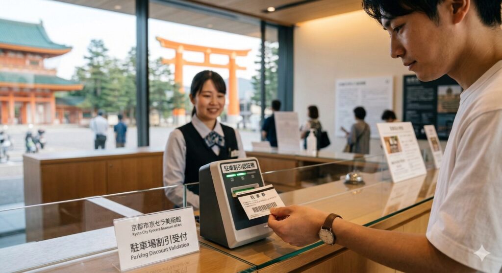平安神宮の目の前にある「京都市営岡崎公園駐車場」は、506台という圧倒的な収容力を誇るこのエリアのメインインフラです。通常は有料ですが、周辺の施設を利用することで賢く割引を受けることができます。この駐車場を「実質安く」使うための最大のポイントは、文化施設との提携割引をフル活用することにあります。例えば、隣接する京都国立近代美術館(MoMAK)や京都市京セラ美術館、京都市動物園などを利用する際、駐車券を提示すると200円の割引が受けられる制度があります。平安神宮の参拝とあわせて、これらの施設を一つでも回る予定があるなら、この割引は絶対に見逃せません。