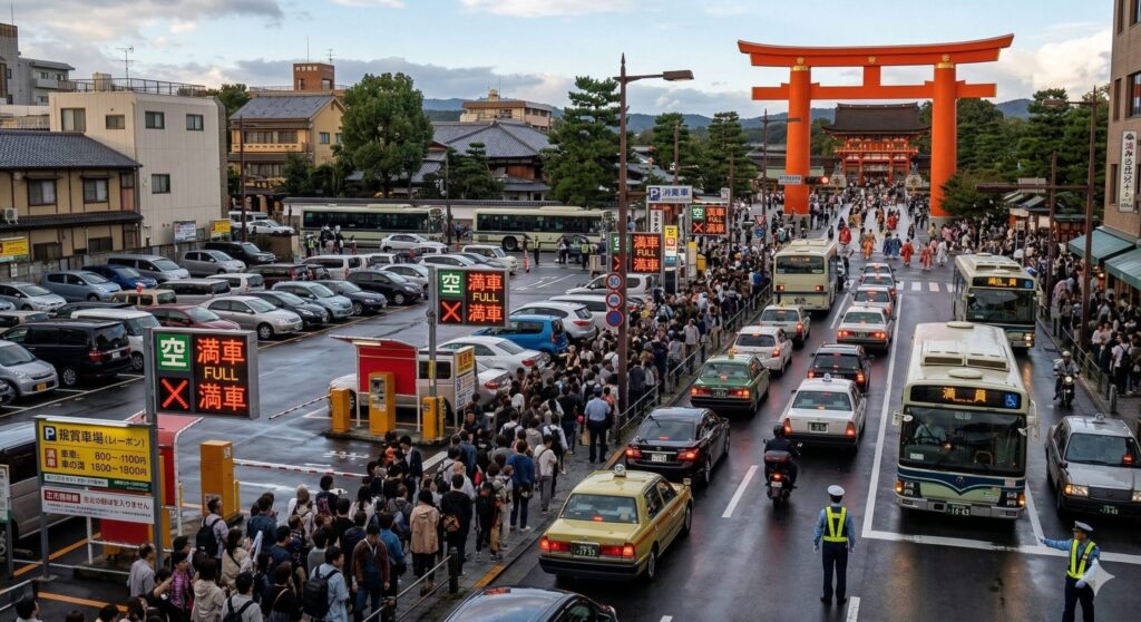 また、時代祭の日は平安神宮に行列が帰着するため、周辺道路で大規模な車両通行止めが実施されます。たとえ運良く駐車場を確保できたとしても、規制時間内は駐車場から車を出すことすらできなくなる可能性があるんです。こうした行事の時期に、行き当たりばったりで無料や安い駐車場を探すのは、砂漠で針を探すようなもの。私から言えるアドバイスは、この時期は公共交通機関に完全にシフトするか、あるいは数週間前から予約できる駐車場を死守するかの二択しかない、ということです。何も対策をせずに車で向かうのは、金銭的にも時間的にも大きなリスクを伴うことを忘れないでくださいね。