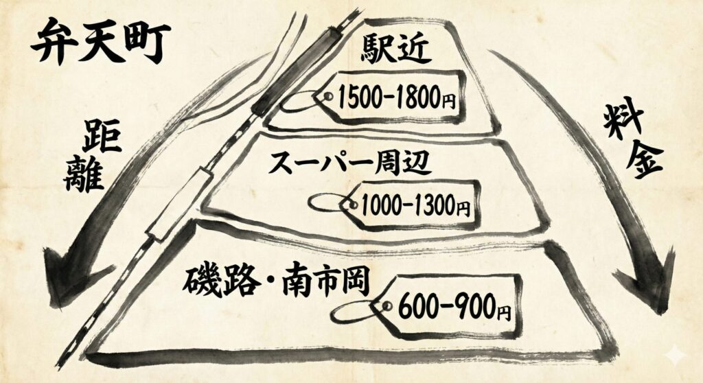 仕事や観光で長時間停める場合に、最も気になるのが「24時間最大料金」ですよね。弁天町エリアは、駅からの距離に比例して料金が劇的に下がっていく面白いエリアです。どのあたりなら自分の予算に合うのか、一目でわかるように目安を整理してみました。