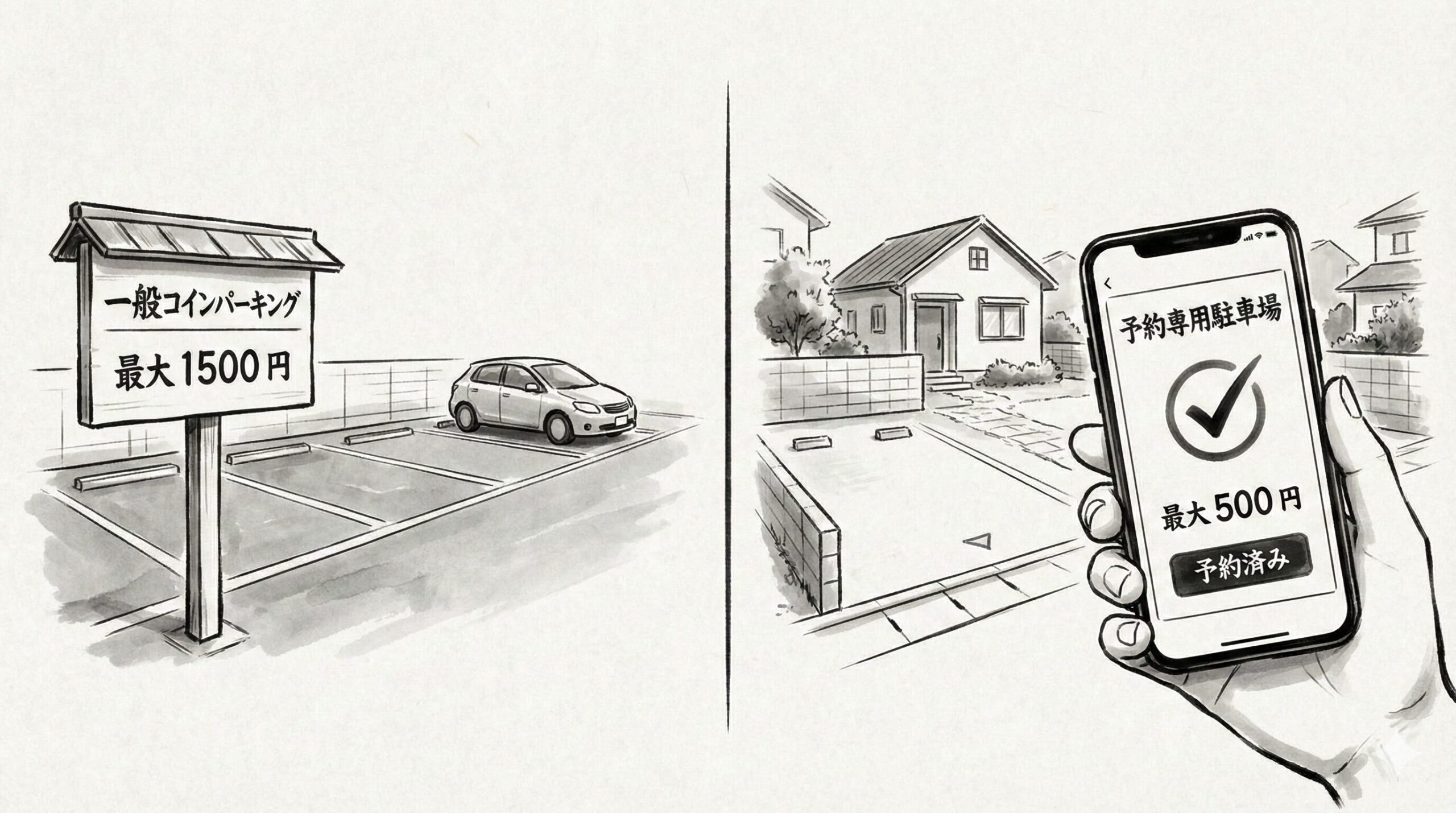 - 駐車場探しの手間ゼロ:スマホで事前に予約・決済が完了するので、当日は直行するだけ。