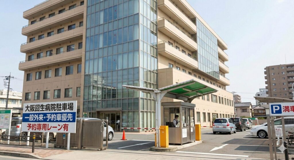 新大阪駅周辺で、特に予約スポットとして名前が挙がることのあるのが「大阪回生病院」の駐車場です。駅から徒歩5〜7分ほどという絶好のロケーションにあり、予約サイト経由で利用できる場合があります。病院という公共性の高い施設の一部であるため、有人管理のケースが多く、機械式の操作に不安がある方でもサポートを受けられるのが心強いですね。1日1,000円前後〜という非常に良心的な価格設定も人気の理由ですが、時期によって掲載状況や予約可能枠が変わるため、事前のこまめなチェックが欠かせません。