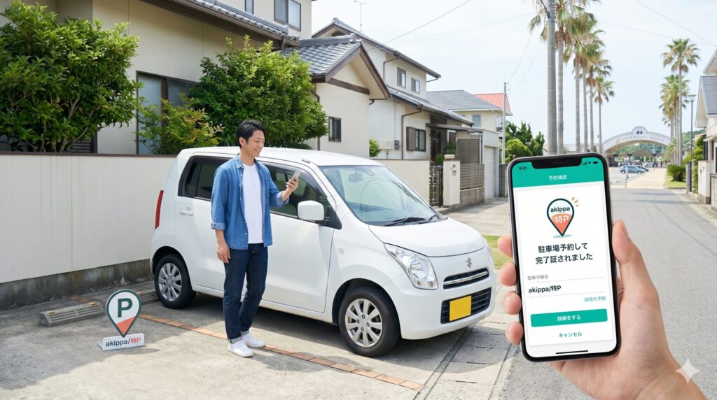最近、駐車場業界で利用者が増えているのが、akippa(アキッパ)や特P(とくぴー)といったシェアリングエコノミー型の予約サービスです。これらは、現地の個人宅の空きスペースや店舗の駐車場を、一日単位で貸し出している仕組みです。アドベンチャーワールドの周辺は、実は地元の方々の協力によってこうした予約制駐車場が点在しており、まさに「裏ワザ」的なスポットとなっています。