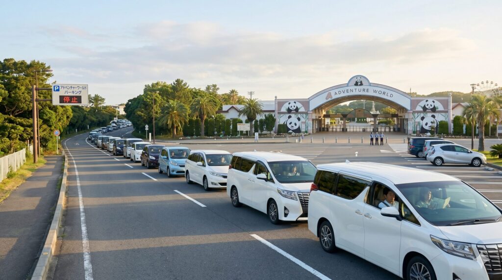 予約制駐車場を活用すれば、その渋滞の列を横目にスムーズに駐車し、すぐにパークへ向かうことができます。この「時間の短縮」こそが、真の意味での高いコストパフォーマンスと言えるでしょう。特に、アドベンチャーワールドは広大で、マリンライブの開演時間やパンダの観覧時間など、タイムスケジュールが非常に重要なパークです。駐車場で時間をロスしてしまい、見たいショーに間に合わなかった……なんてことになれば、せっかくの入園料ももったいないですよね。