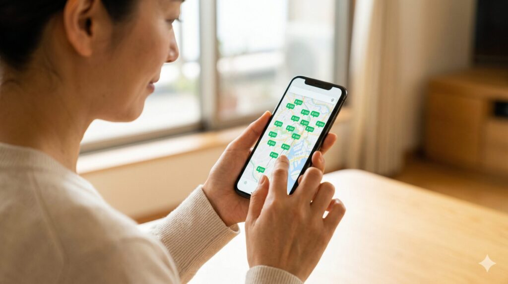 最近、私が福山駅周辺で車を停める際に真っ先にチェックしているのが、スマホで手軽に利用できる「予約制駐車場」です。かつては現地の看板を見て空車を探すのが当たり前でしたが、今は「特P(とくぴー)」や「akippa(あきっぱ)」といったサービスを活用するのが非常におすすめです。これらのサービスは、個人宅の車庫や企業の未利用地を1日単位で貸し出しているもので、従来のコインパーキングに比べて料金設定がとにかく抑えられているんです。