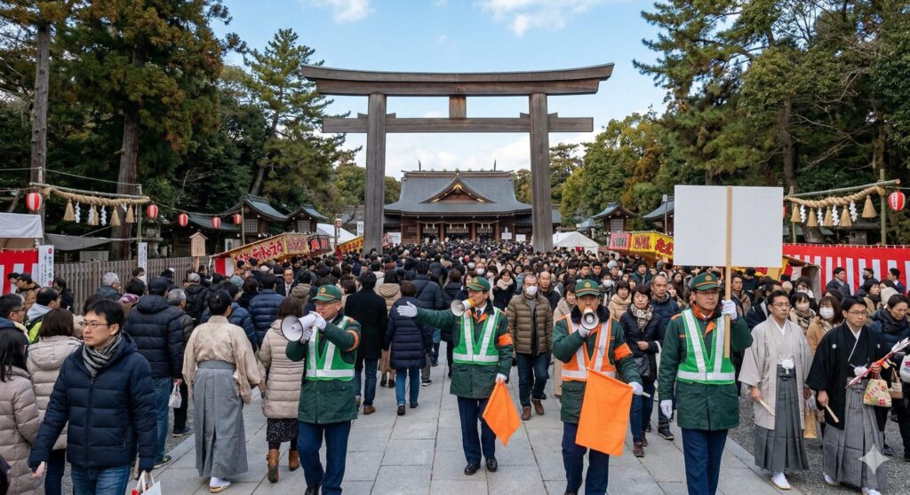 お正月期間や紀元祭(2月11日)などの大規模な祭事が行われる際は、通常時の料金体系や運用が大きく変わります。特に初詣の三が日は全国から多くの参拝客が訪れるため、神宮周辺では広範囲にわたる交通規制が実施されます。私は毎年9時頃に訪れていますが、帰りの11時頃には大渋滞が発生します。この時期、公式駐車場は臨時駐車場を含め大幅に増設されますが、収容台数は年により変動します。また、料金についても祭事期間は特別料金が設定される場合があるため、通常時の500円という感覚で行くと驚くかもしれません。何より注意したいのが、長時間の待ち時間が発生することです。1〜2時間以上になるケースもありますので、十分な時間の余裕を持つことが必須となります。