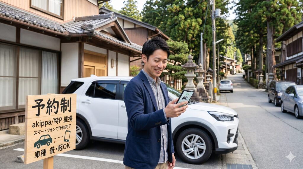 近年、駐車場シェアリングサービスの「特P」や「akippa」が急速に普及しており、高野山周辺でも予約可能なスペースが増えています。最大のメリットは、何といっても「自分のための駐車スペースが、当日必ず確保されている」という圧倒的な安心感です。朝早く出発して、祈るような気持ちで駐車場の空きを探す必要はありません。予約さえ済ませておけば、たとえ到着が遅くなっても、悠々と指定の場所に車を停めることができます。