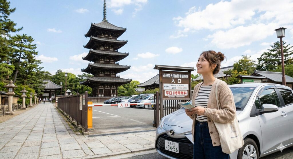 一方で、私が最終的に強くおすすめしたいのは、やはり「予約制駐車場」の活用です。その理由は、「自分の旅行プランを駐車場に合わせるのではなく、駐車場を自分のプランに合わせられる」からです。無料駐車場に合わせて朝早く家を出たり、慌てて1時間以内に車を戻したりする必要はありません。自分のペースで奈良に到着し、大仏様を拝み、鹿と遊び、お土産をゆっくり選ぶ。この「自由な時間」こそが、観光における最大の価値ではないでしょうか。