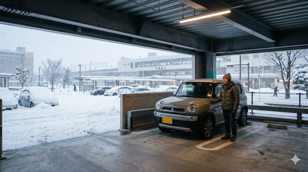 新潟の冬に新幹線を利用する際、料金以上に気にしなければならないのが「雪」の問題です。数日間の旅行から帰ってきたとき、自分の車が1メートルの雪に埋もれていたら…。寒空の下、キンキンに冷えた車を掘り出す作業から始まる帰路は、あまりにも過酷ですよね。そんな冬季の利用において、最強の選択肢となるのが「屋内型」や「屋根付き」の自走式立体駐車場です。