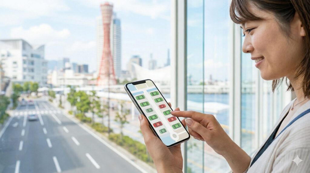 予約サイトを覗いてみると、土日でも1,500円〜2,000円程度で終日停められる穴場が見つかることもあります。直営駐車場の行列を横目に、予約専用の入口からスマートに入庫する……そんな体験を一度してしまうと、もう行列には並べなくなるかもしれません。平日の無料サービスを熟知しつつ、いざという時のバックアップとして予約サービスを使い分ける。これこそが、神戸を遊び尽くすための賢い選択と言えるでしょう。